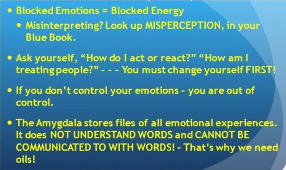 Trauma is something we all experience in our lifetimes. Every trauma. if not processed properly. affects our lives in many different ways (emotionally, relationally, spiritually, economically, physically (health), adaptability, sexually, and many more). When trauma happens to us our subconscious mind's job is to "keep us safe·. Often times the mechanism in our brain that is alerted to "keep us safe· gets turned on and cannot turn of once it is activated. This causes a myriad of problems. Dr. Corinne Allen, owner and director of her Brain Camp in Idaho, made and amazing discovery using Dr. Carolyn Mein's book. "Releasing Emotional Patterns with Essential Oils" (known as "the blue book") that has literally changed thousands of lives! Dr. Corinne Allen discovered that it was not just emotions that needed releasing but the TRAUMA BEHIND the emotion. By practicing her simple yet profound technique and script of ·releasing the trauma BEHIND the emotion· the subconscious mind is able to fully RELEASE THE TRAUMA CAUSING THE EMOTION which is causing a BLOCK in the body or actions of the individual. The results are nothing short of miraculous and in my 25 years of working with thousands of individuals with a wide range of physical and behavioral issues I have not seen anything that works so quickly and painlessly as this technique. I have developed this comprehensive class with the blessing of Dr. Corinne Allen and have traveled coast to coast since 2016 teaching this to many groups of people. With the ability to teach via Zoom Calls has enabled me to be able to teach this class at a substantial discount. The fee for this class prior to 2020 was $225.00 per person. Now I am able to offer it for just $150.00 per person including the shipping of the classroom materials' This is an amazing value and a great convenience to take the class from your own home without any travel or accommodation expenses.