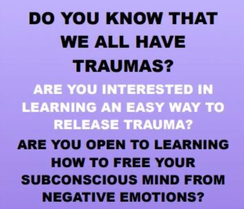 Trauma Release Sessions - $50 per 30 minute session (Also available via Zoom)